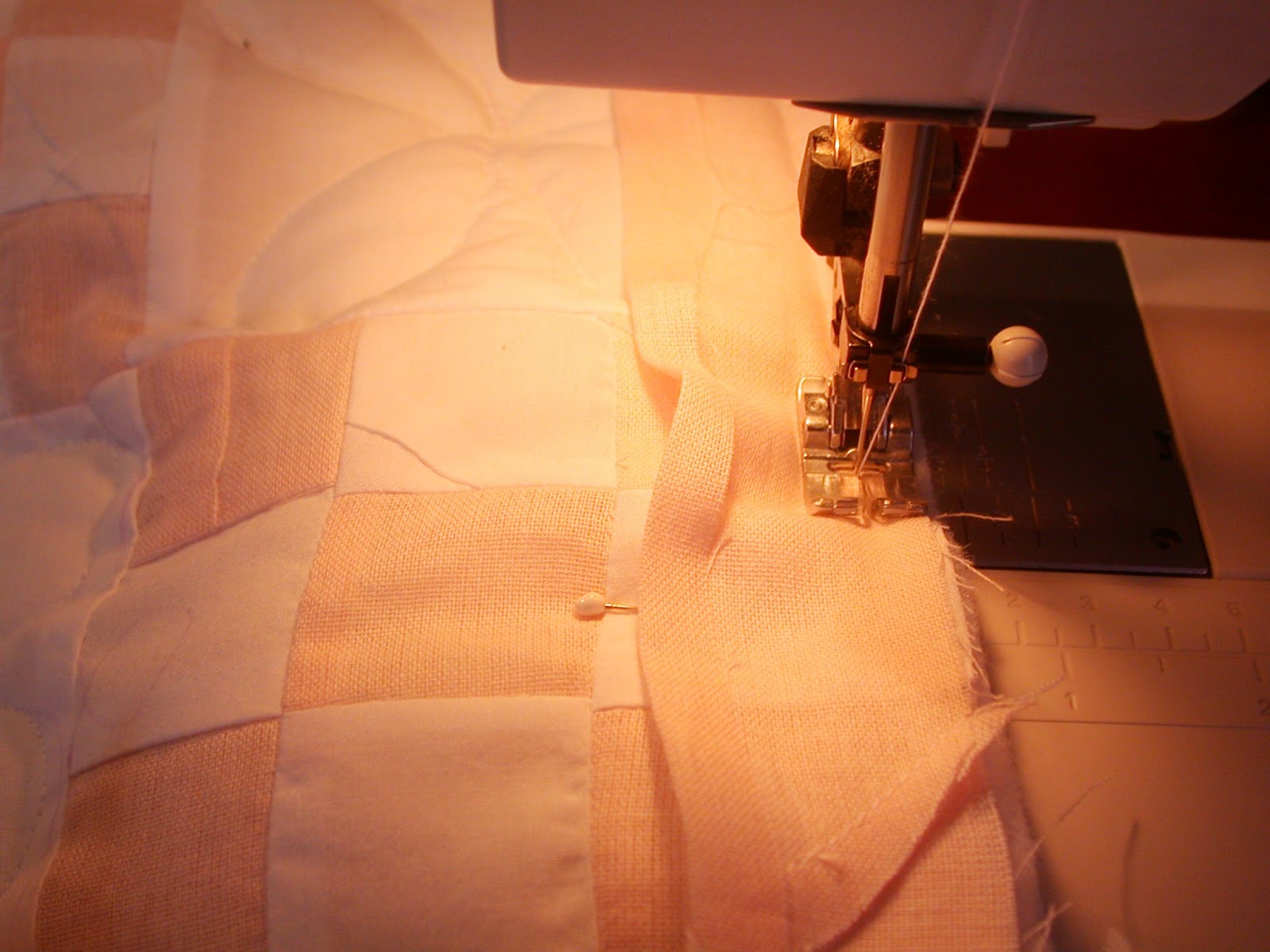 A másik oldalon a szalag bevasalt szélét kell varrnom, így könnyű a dolgom.
